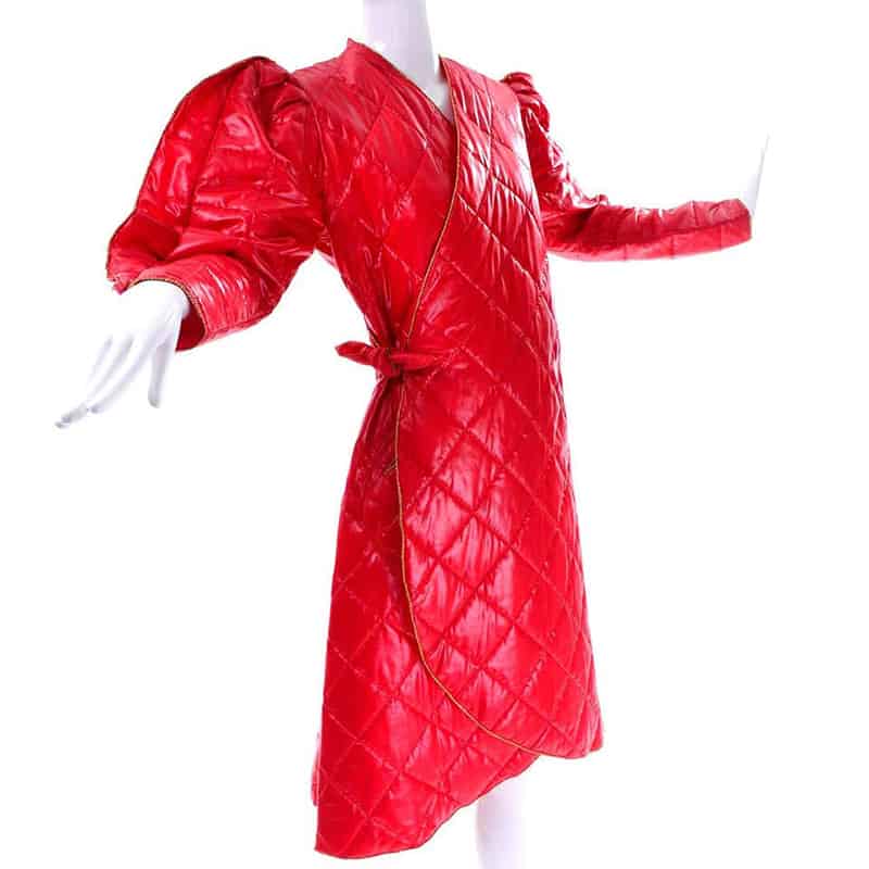 Avant Garde Vintage Custom Shiny Red Quilted Coat
