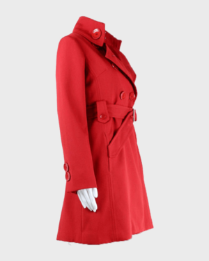 Womens Red Belted Mid-Length Coat Womens Red Belted Mid-Length Coat