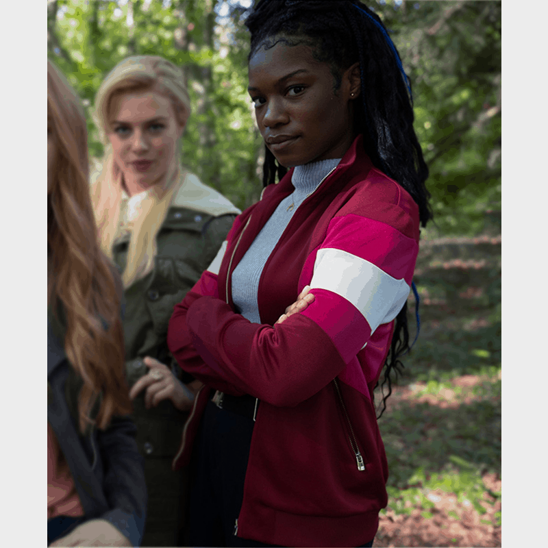 The Absolute Leather store exhibits another Outfit Aisha Fate The Winx Saga Red jacket. This jacket has composed of glossy silk or cotton material and has an up-to-date stand-up collar.