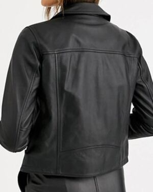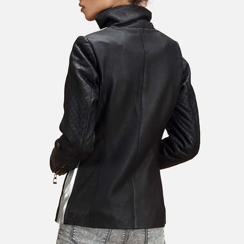 This Alia Metallic black leather biker jacket is made up of original sheepskin leather. The aniline leather finish just adds more style to the class of this leather jacket. Its quilted viscose lining is the best interior material used in it. The high neck style of the collar is always classy, plus the zipper cuff style makes it even unique. It just looks killer in black color.