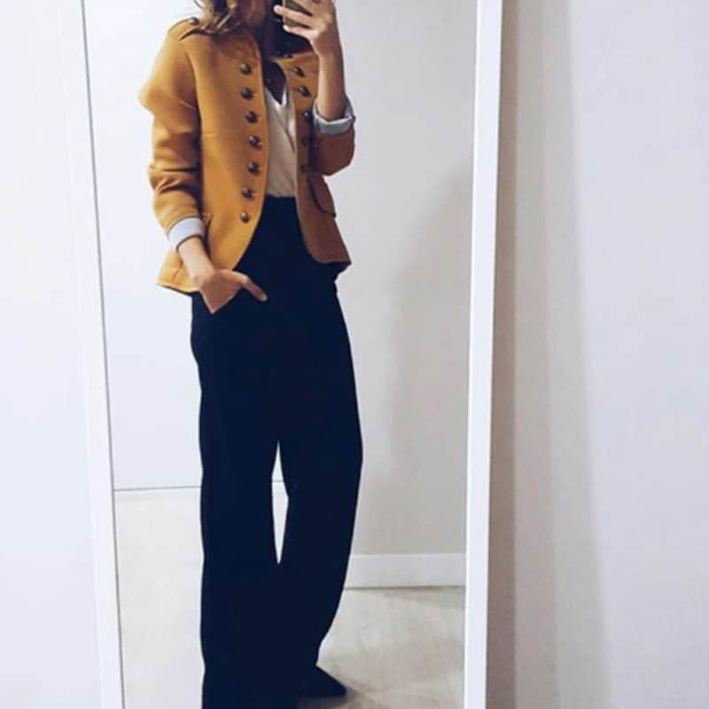 Blazer for women is a rare piece that never moves away from fashion, which illustrates the reason for looking beautiful. Here comes the trendy Double Breasted Blazer For Women that captures an ideal image in the mind of ladies. The cotton material blazer is a masterpiece with high-quality stuff, a buttoned front closure, a stand-up collar design, and long open sleeves in a beautiful style that lets the wearer shop on the spot. There are two inner pockets, and the coat looks gorgeous in green but crafted in other beautiful colors.