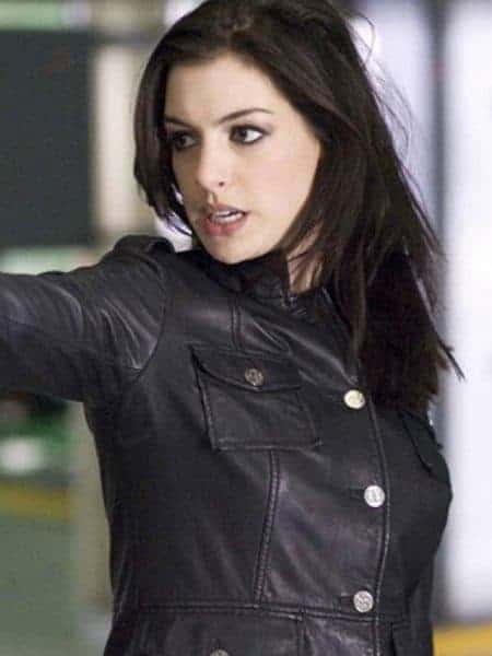 DESC: This overwhelming Anne Hathaway jacket is accessible in real cowhide leather with an internal thick covering. The Anne Hathaway Get Keen Dark Cowhide Coat has a standup neckline and fastened conclusion that makes it captivate everyone. Comprising of no zippers on the whole coat, the slick Specialist jacket has two fluttered pockets with buttons, two fluttered button pockets on the front, one fluttered pocket on the sleeve also alongside two inside pockets.