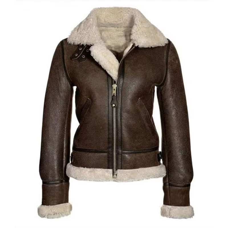 Have a look at this b3 bomber distressed brown aviator shearling sheepskin motorcycle women leather jacket with faux fur. Every woman must have this jacket in her wardrobe, especially to be worn in winter. This stylish jacket with faux fur will keep you warm and cozy in the chilly winds. It is fashionable in appearance, making itself the perfect choice. Order today and see for yourself how amazing it is.