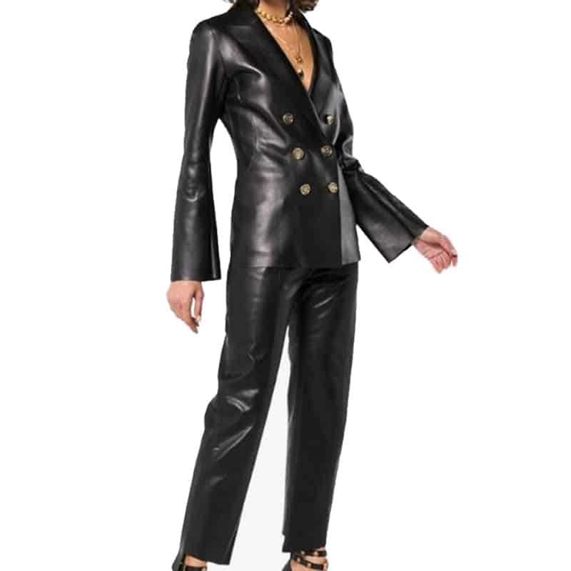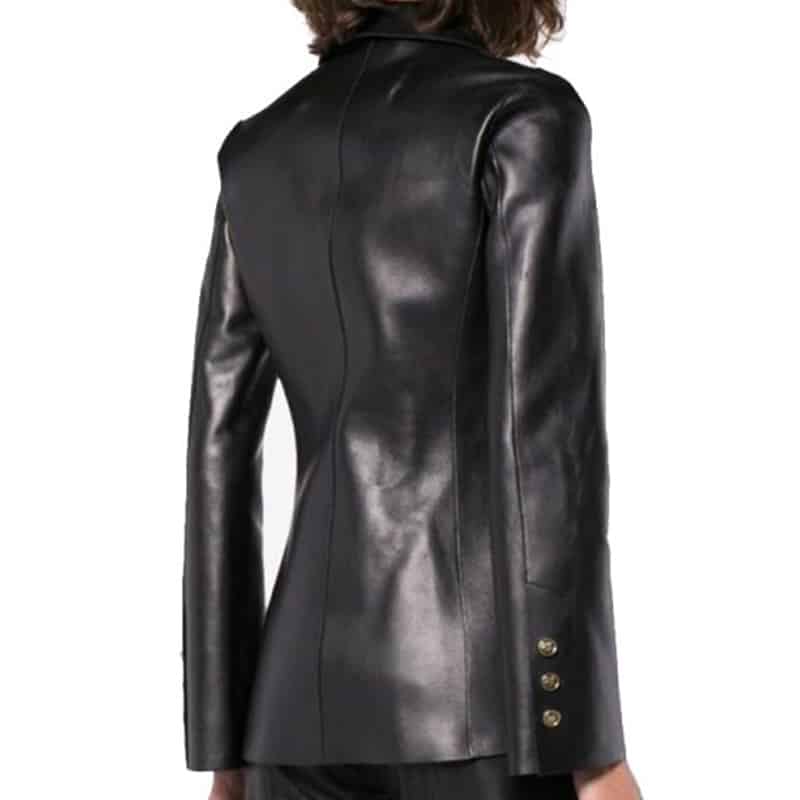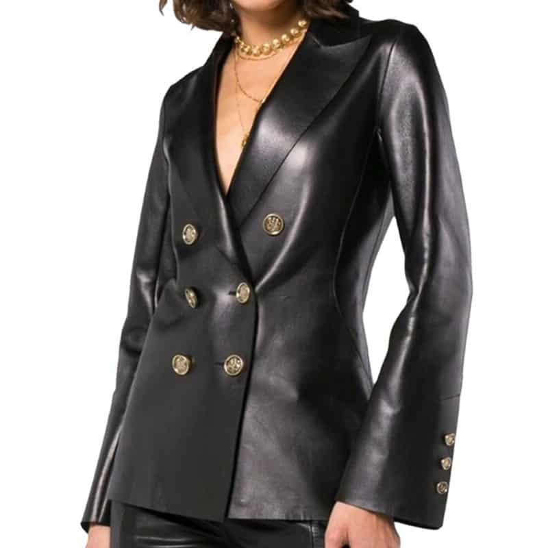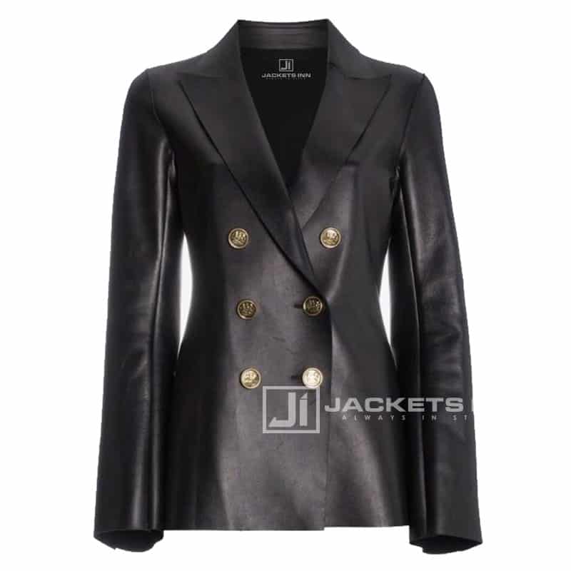 Black Double-breasted Leather Blazer for Women, genuine leather material with glossy and finished leather seems to be the most durable outwear for women in this Halloween season and wintertime. The features are a front with buttoned style closure, a notched lapel collar design, followed by long buttoned cuff sleeves, inner pockets, making it stunning. Wrap this leather jacket with any dress code and give your personality a wrap-chic look. We craft these jacket in black, but we care for your choices and make them in other colors too. Buy this as soon as possible as the event is the nook!