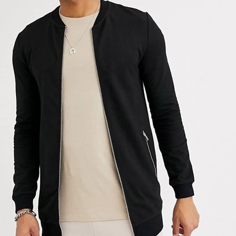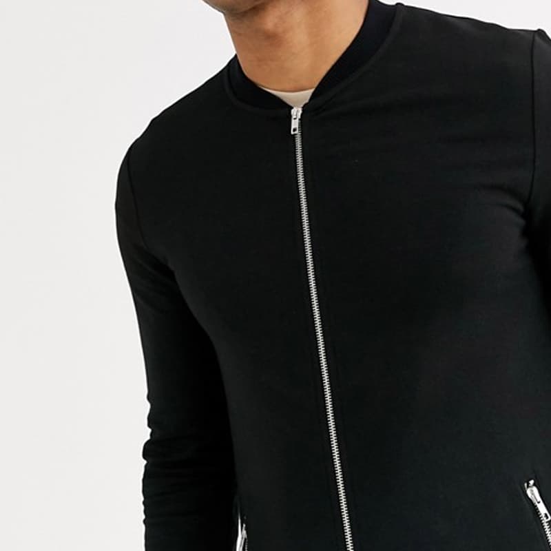 - At jacket inn you can order Black Muscle Longline Jersey Bomber jacket with Silver Zip Pockets or any made to measure jacket tailored to your size.