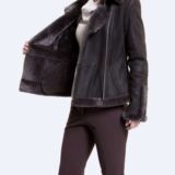 This amazing black stylish shearling jacket has to be in your unique collection of jacket. The asymmetrical design front zip closure with long sleeves is just perfect. The slash pockets let us keep valuable stuff in them while we are out having them on. It is the perfect choice one can have for party wear. Order today and see for yourself how impressive this shearling jacket is.