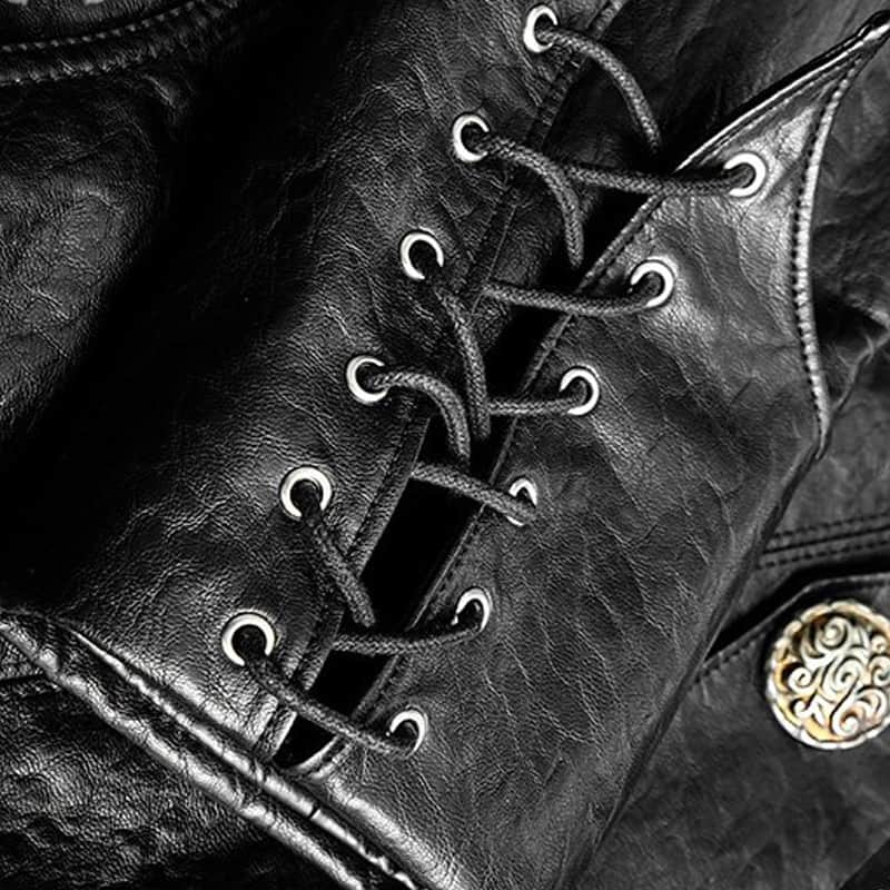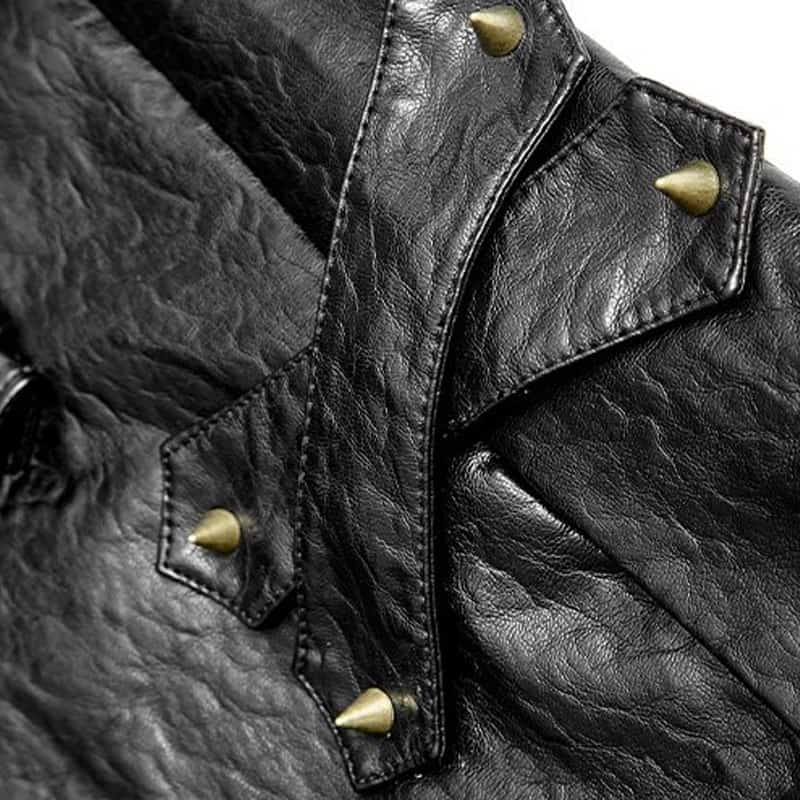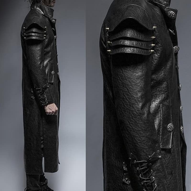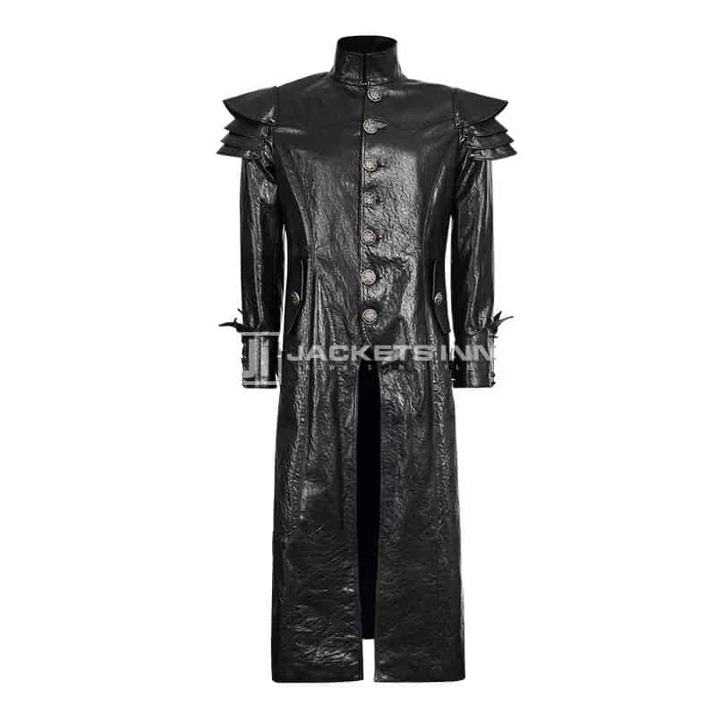 Black Synthetic Leather Long Trench Coat For Men’s is the attire for the upcoming Halloween party, a classic leather material long coat in bossy and silken black color. The draft of this trench coat includes front buttoned style closure, an erect upward collar, long hem cuffed sleeves, and two front pockets. There are padded shoulders with classic design and fancy buttons all over the front. The trench coat is perfect for getting a killer look and stay out of the crowd. Fetch this attire from our online store with a discounted price, regular fitting, and quality of stitching.