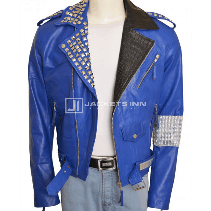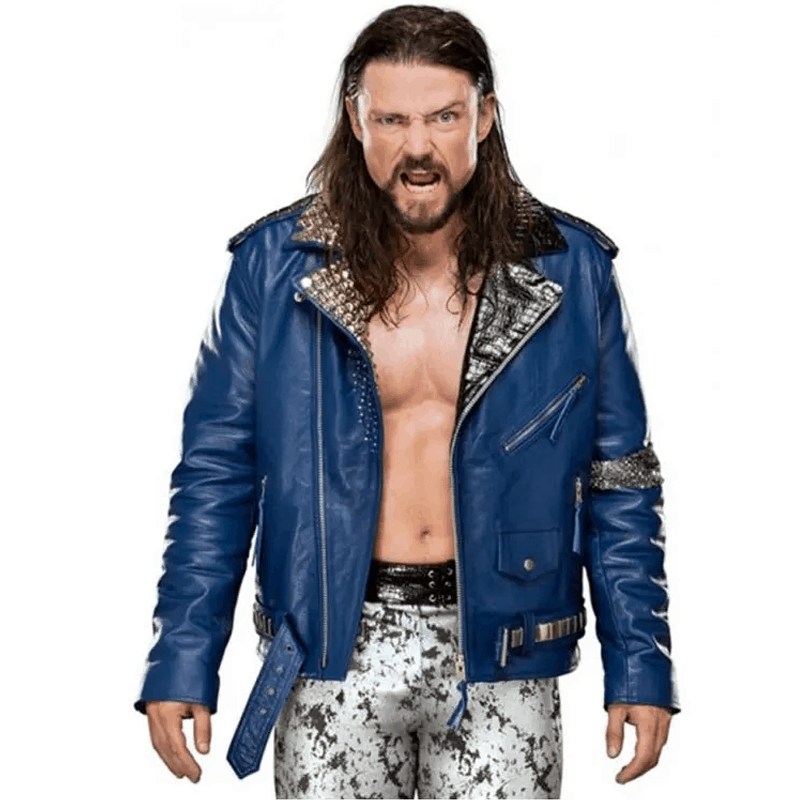 This stunning Brian Kendrick jacket is a delightful clothing roused from the popular wrestler closet. The intense and appealing Brian Kendrick displayed a noteworthy look wearing this particularly designed jacket. It has been made with top grade calfskin material in white and blue tones. It conveys a completely decorated lapel collar outfitted with bright studs and tiger skin design followed by a traditionally joined topsy-turvy front zippered conclusion.