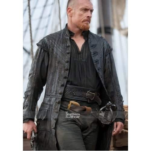 DESC: The Captain Flint black sails toby Stephen coat is produced by using a faux leather fabric. It is long and has a stand-up collar that gives it a tense look. The sleeves of the coat are long and fitting with secured sleeves. The inner side of the captain flint coat has a delicate thick covering that makes it easy to wear. The stitched design of this coat makes it appealing.