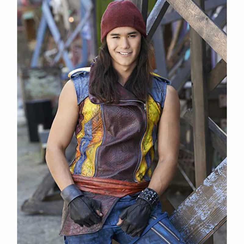 This Jay Descendants Vest is a duplicate of the vest that Jay wore in Descendants. In the movie, Jay is the son of Jafar who is the antagonist from Aladin’s tales. Jay is one of the four children whom Ben invites for his coronation ceremony. He then along with Mal, Evie, and Carlos attempts to steals the wand from the museum. He then joins the school where he tries Tourney and impresses the coaches with his talent. In the end, Mal convinces him to fight against Maleficient. Booboo Stewart played the role of Jay.