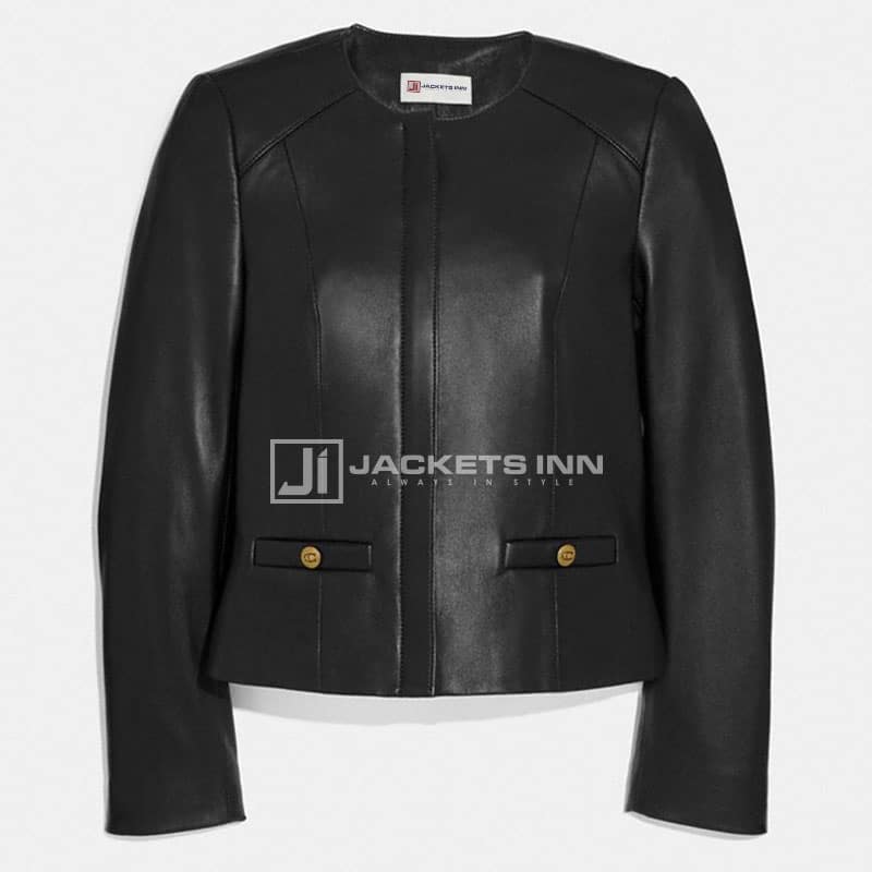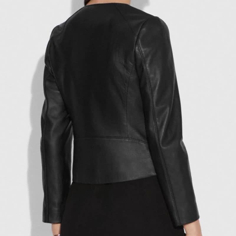 Are you looking for a women’s jacket that can be worn on any occasion? The good looking divine leather jacket is a complete package in terms of a unique design, styles, cut and details. The women’s jacket is made from real leather material that gives the overall jacket the elegance, smoothness and shine that other leather jacket don’t. It comes with a front long zipper and round neck collar. The jacket has long hem cuffed sleeves making it suitable to wear in winters. It has two outside waist and inside pockets that adds comfort to the look. The design makes it suitable to be worn on a shirt, t-shirt or dress. You can pair it up with boots or sandals. The jacket has a regular fit and comes in different sizes. It comes in black color and ends just above the hip.