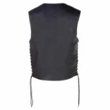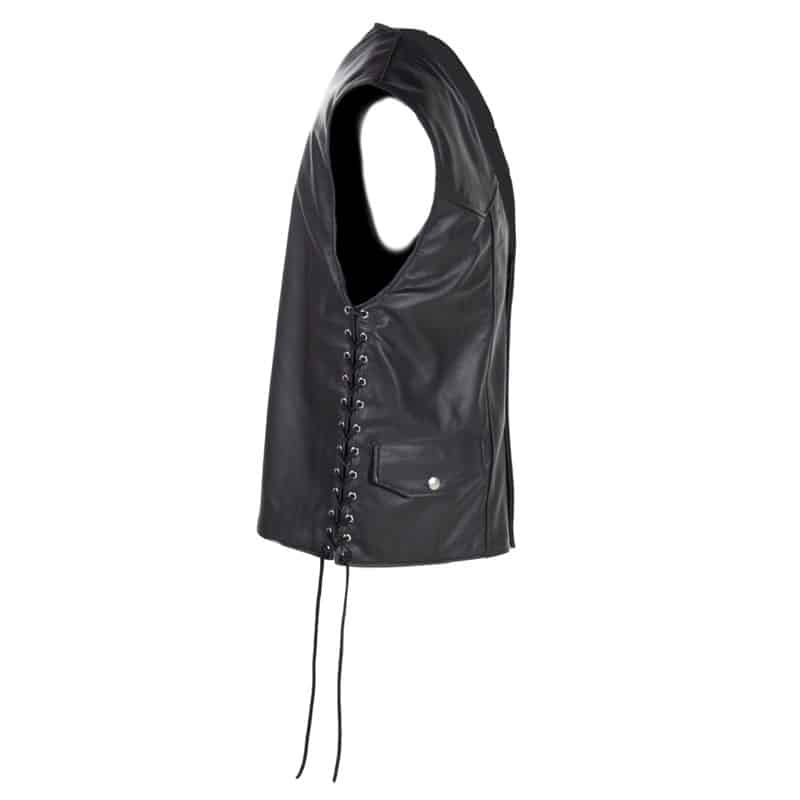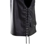 • Pebbled cowhide “club” vest with adjustable side laces and nickel grommets
