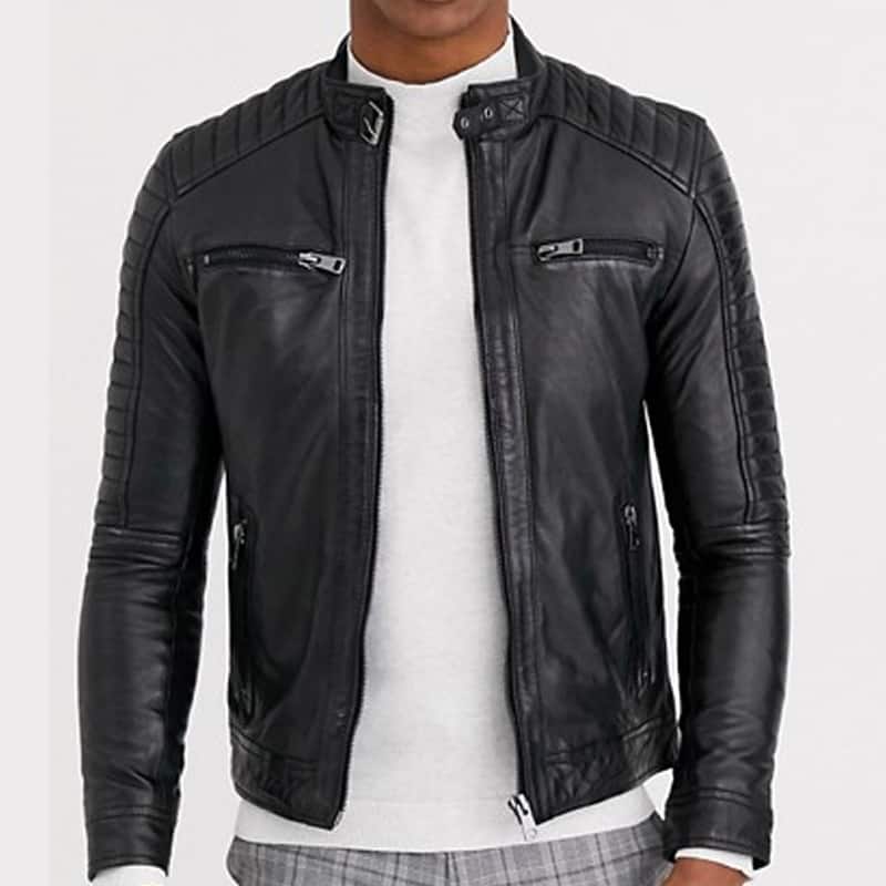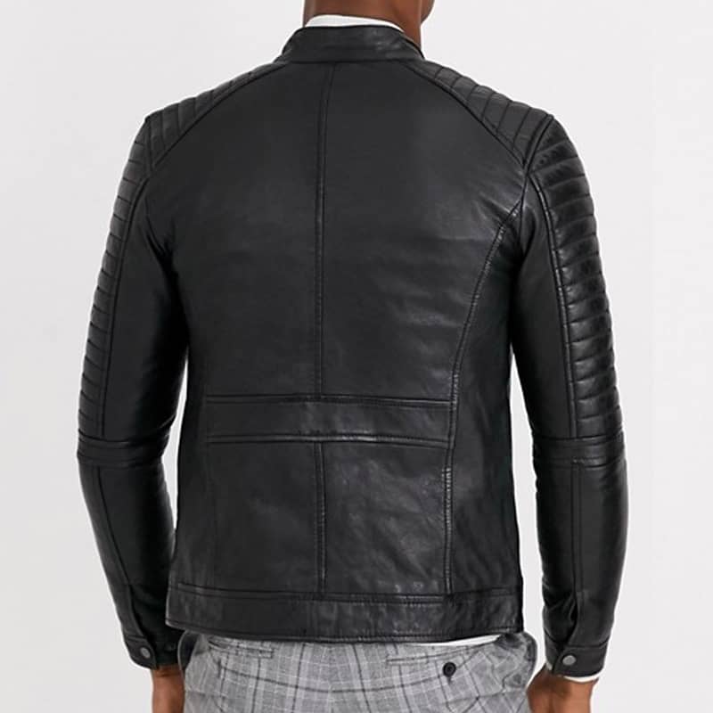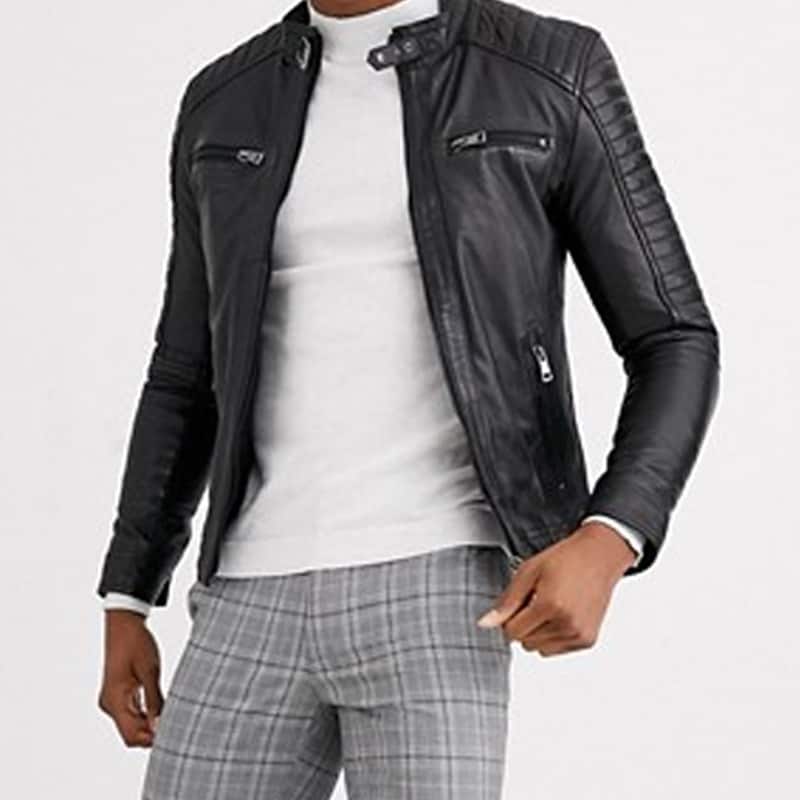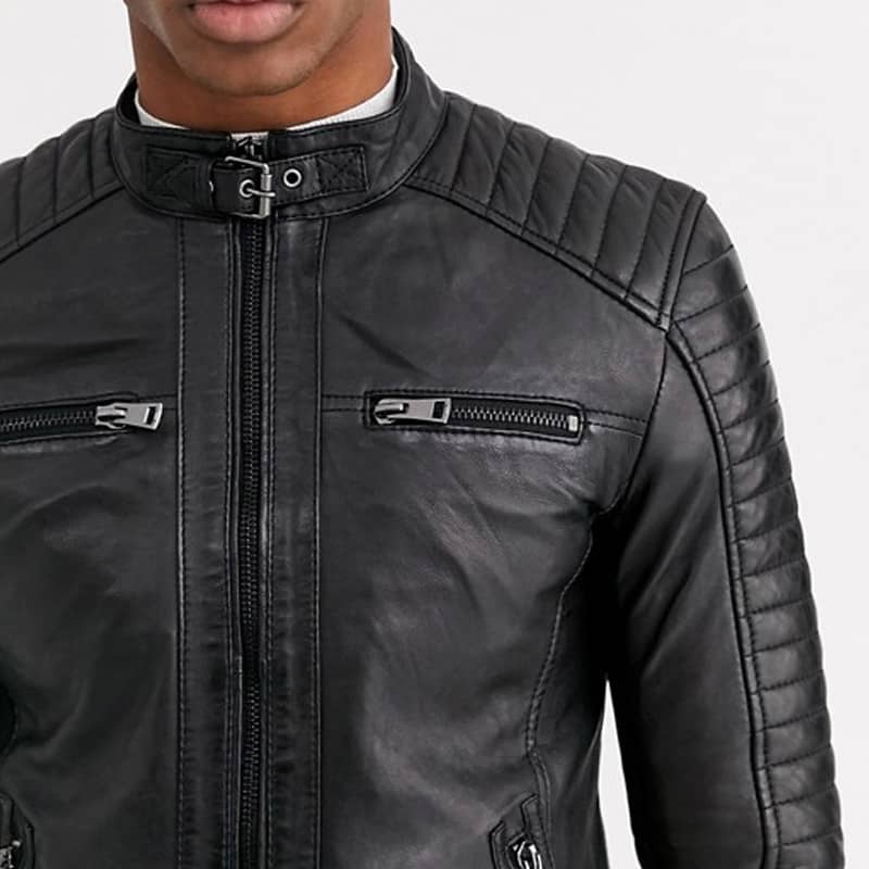 Men’s Real Leather 4 Pocket Biker jacket is the trendiest essential to wear for an extra sharp look. This mens biker jacket sale offers the best opportunity in this winter season to combat with cold in style. The Buckle detail to neck and Zip fastening make it a perfect choice for cold climate. Black or brown biker jacket mens has a classy functional pockets and quilted panels available in Regular fit as well. Leather biker jacket mens is the right choice for every man who love to wear fitted biker outerwear in the winter. For extra comfort you must invest in black biker jacket mens to dress up gracefully. No matter you need a short or long sleeve outerwear, our team would offer you black biker jacket mens made to measure. By adding a tailored black or tan biker jacket mens in your wardrobe, you can entice everyone with no regret. We provide newest selection of black and red biker jacket mens in all sizes such as plus size jacket and XXS.