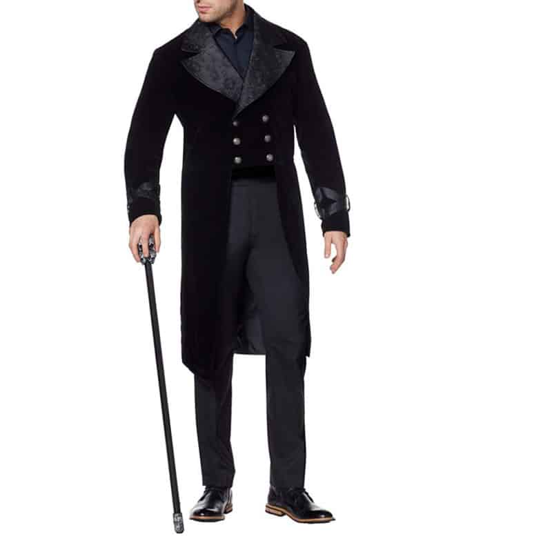 Want to look prominent and stylish? Then you are in the right place, and we care for you and your lifestyle. The Men’s Victorian Astonishing Vampire Polyester Coat is the best choice for Halloween parties. The coat features a buttoned front closure, a notched lapel collar that exceeds with long open hem cuff sleeves. The new collection is for men who are crazy to dress up and disguises them as a vampire look. The trendy vampire coat is now in the latest fashion trend and having special attention in the eyes of the consumer. The trendy coat in black is the best innovation for fashion lovers who are very selective in clothing. Celebrate this Halloween with this Astonishing Vampire Polyester Coat and catch the eyes of the crowd.