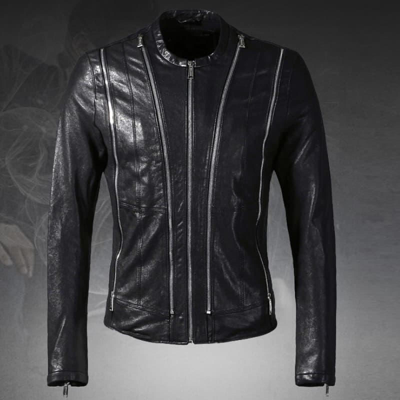 • We offer New men`s multi zipper design leather jacket with a great collection of replica movie jacket and celebrity style jacket in all sizes including tailored fitting.
