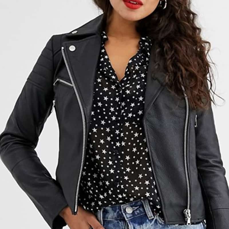 The Original Women Leather Biker jacket in Black is a beautiful choice for women to purchase long and short leather jacket for women’s styles and colors. This short-fitted women’s jacket comes with studded lapels, zip fastening, and functional pockets that make it a go-to fundamental. This black leather motorcycle jacket is infinitely on the move where a person looks out for sharp style. Thus, opt for these black leather women’s jacket to represent your unique nature in the cores of everyone. The trendy jacket is available in black, but it will be available in other colors too, as you requested. Avail of this best fitted outwears in all tailored sizes with the best collection of colors and designs.