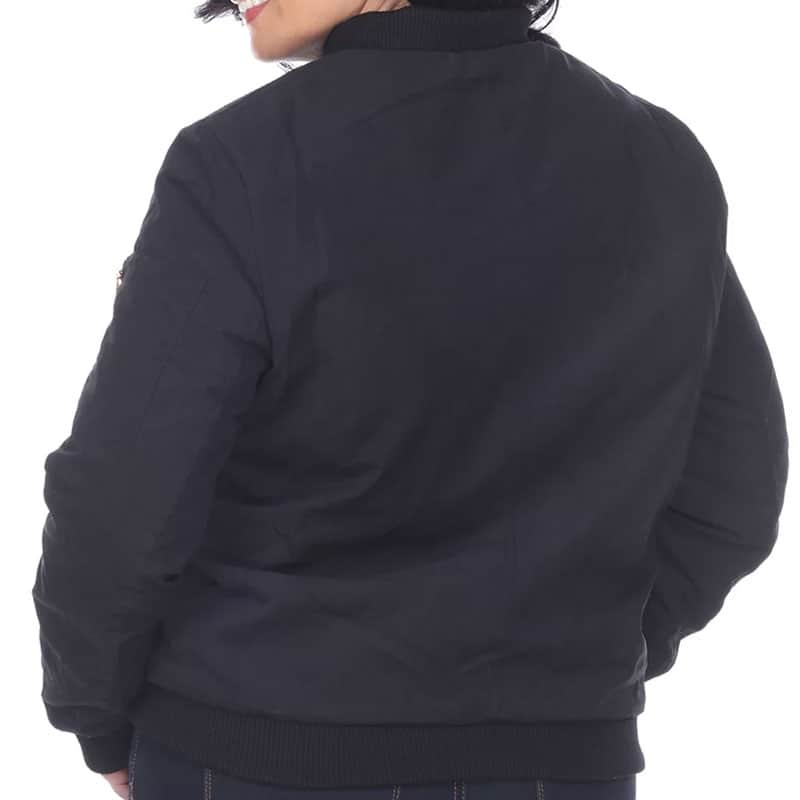 Have a look at this plus size white mark bomber jacket. This athletic fit just looks fantastic on women, and the length is also perfect. The full-length front zipper goes perfectly with its full sleeves. Branded cuffs are another unique feature here. Order this jacket from our online store now and let us deliver it to your doorstep. Have this jacket added to your collection of jacket.