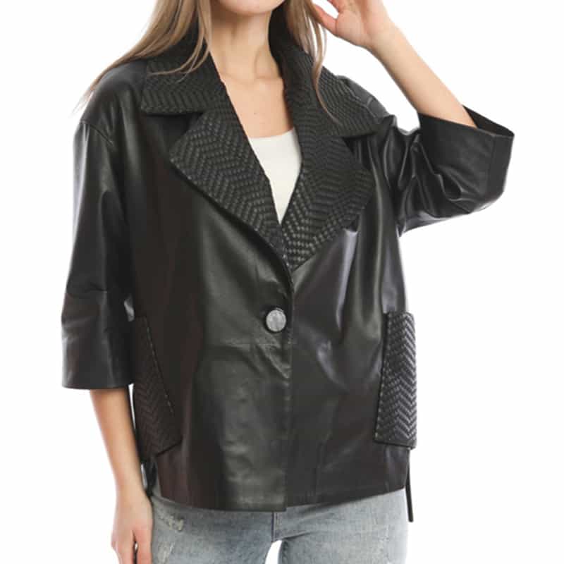 Leather jacket have completely changed the way you dress up in winters especially for women. The unique jacket styles are always in trend. This winter buy from our new collection of classic urban style jacket. The jacket are made from pure leather and are stitched to perfection. A classic urban jacket comes with a big front button design and wide lapel collar that end on the chest giving it much needed v neck shape. It has open hem cuff sleeves that end just below the elbow. The jacket comes with two outside waist pockets beautifully designed matching the collar design. There are two more pockets inside the jacket. The jacket is a bit longer at the back that gives a different style from the regular jacket. The urban jacket has a regular fit and is available in all sizes. Since majority of the women love black color we have made it in a smooth and soft black color.