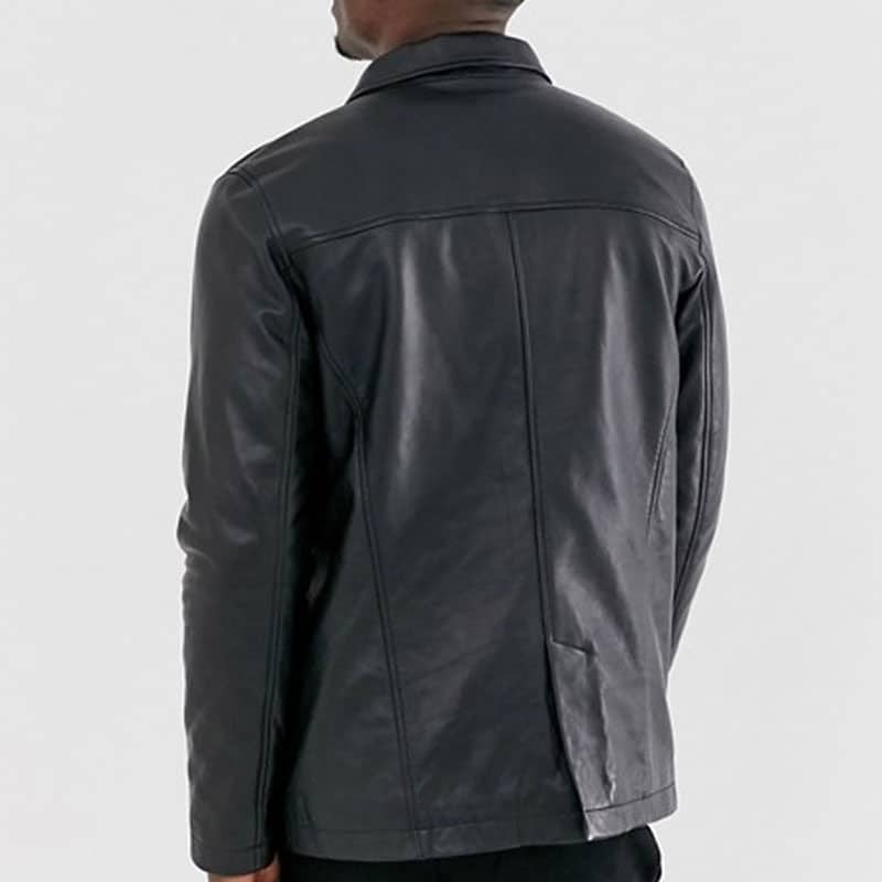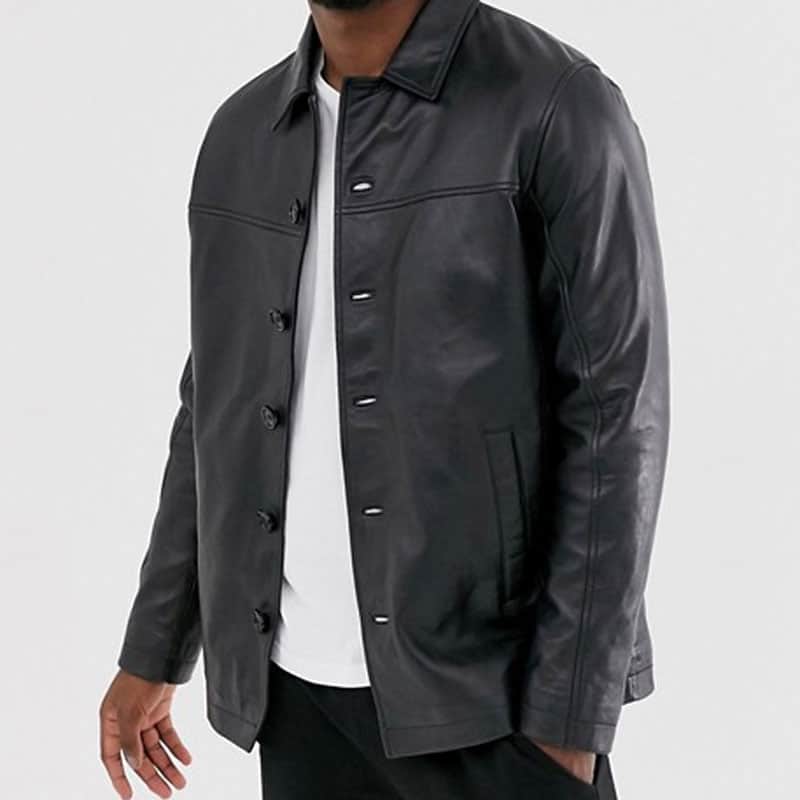Anyone spearheading towards buying a men’s black leather jacket with buttons to survive the coldish winter season can buy the reefer leather jacket as the ultimate purchase. Indeed, the black real leather jacket amalgamates pure voluminous looks with its smooth and soft leather finish. Admittedly, the gent’s black leather jacket follows a minimalistic detailing on its body and arms, displaying a simple and clean look altogether. The simple black leather jacket, combines simplistic elements but doesn’t forget to give away on style, taking on instantly good looks apart from the audience.