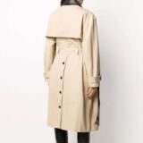 Rokh two-tone leather trench coat for women is the best latest outwear launched in our online store. A very classy, modern, and distinct design coat for women is available in our stock. The is has two tones, black and beige color, with a classic collar, a beautiful double-breasted front fastening closure, and a belted waist. This jacket includes a chest pocket, epaulets at shoulders, long sleeves with a button tab, and a fantastic long straight hem. Hang on! There is a lot more about this coat. There is a storm flap at the back to protect you from rain, a back button fastening; thus, a fantastic outwear for a rainy day. Don’t overthink and order this to look fabulous.