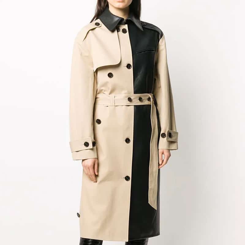 rokh two-tone leather trench coat
