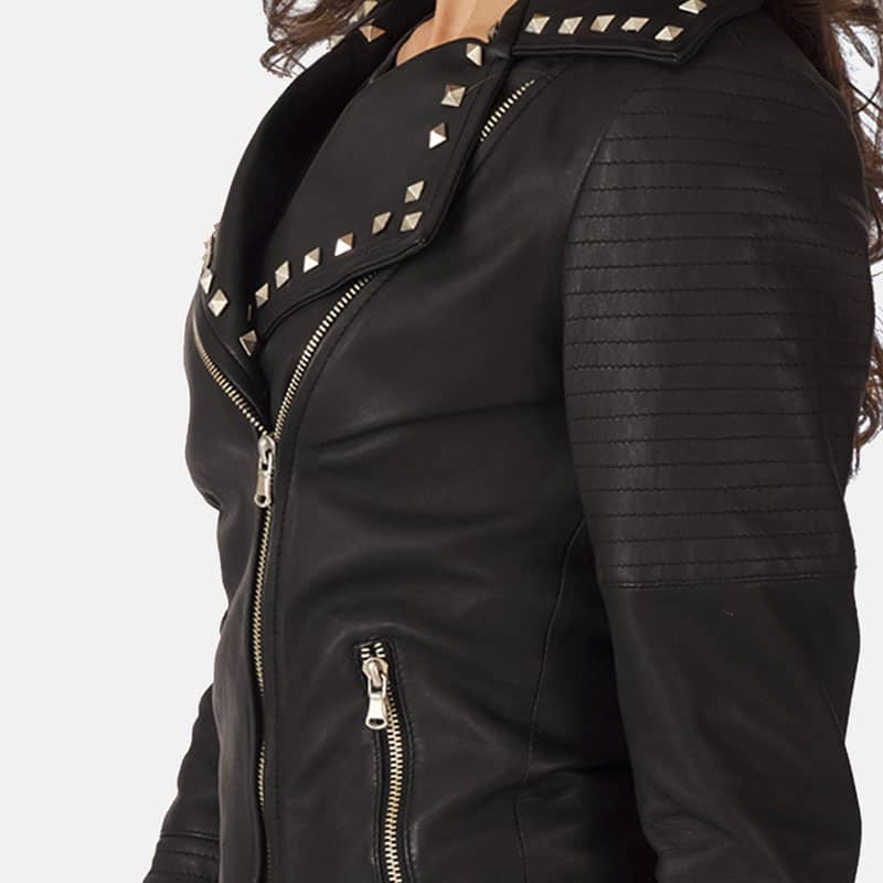 This Sally Mae studded black leather biker jacket has to be your number one choice. The style that it has is undoubtedly unmatched by other jacket. The sheepskin hide leather makes this jacket the perfect choice for riding a motorcycle. The inner quilted viscose lining helps us to feel comfy as well. The notch style collar and simple front zipper make this jacket look even better.