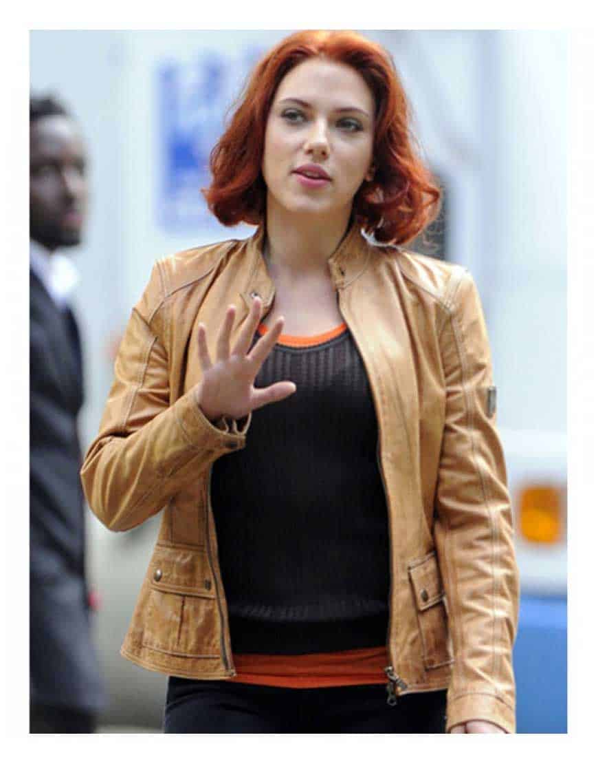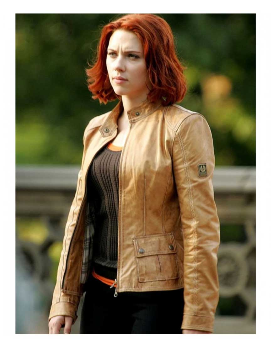 Have a look at this amazing Scarlett Johansson set of avengers dazzling jacket. All the women fans of marvel and black widow must have this fantastic jacket ordered today. The light brown color looks perfectly good, and the snap tab motto collar suits the overall jacket. The inner viscose lining keeps the comfortable feeling there, making it even better. Order today without any further wait.