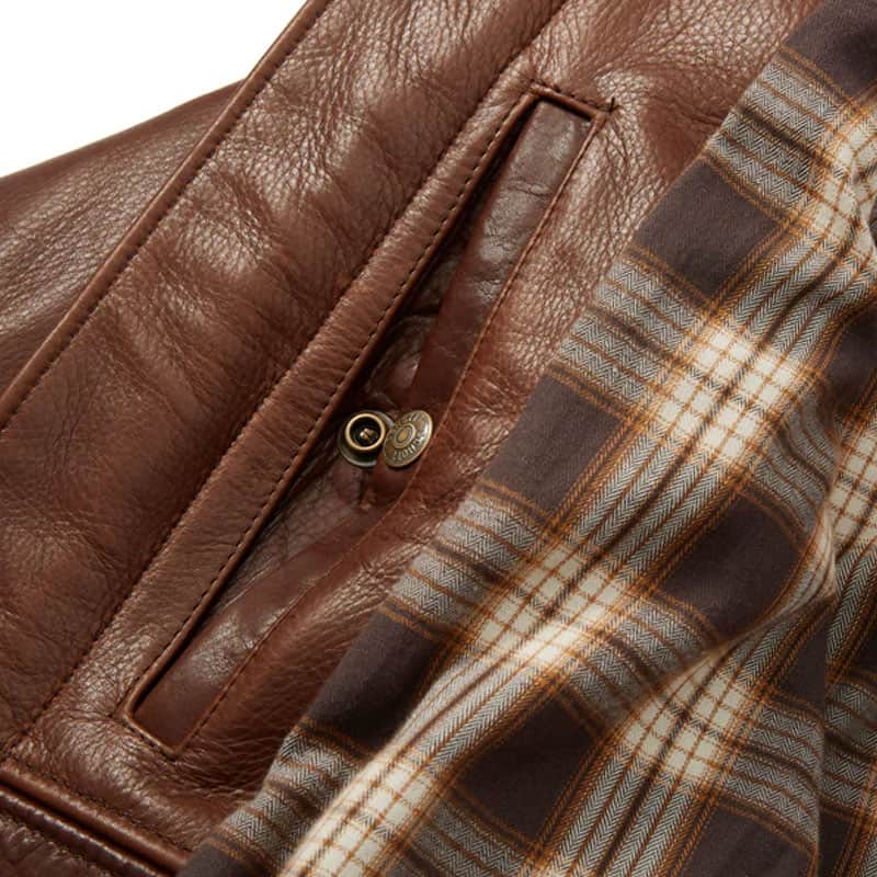 This Schott NYC cafe racer unlined cowhide leather jacket is famous among teens and young adults. It is made from the high-quality aniline-tanned Italian leather. This Schott café racer jacket can be worn at any event or occasion. It is a perfect outfit for summer and winter seasons and suits you in casual or a formal attire. Never miss the opportunity and Buy it now today!