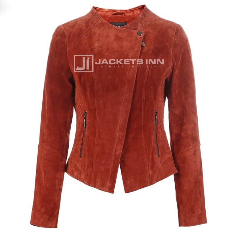 Slim Fit Brown Leather Fabric jacket For Women’s is an outfit for those who like to wear in the fitting style. The pure leather jacket is an excellent example of outwear that keeps you warm and dry in the wintertime. Especially women that are an office going need more articles of clothing and latest collection to stand out from their competition. We care for you and are always there for you to make your wardrobe filled with more outfits. Here comes our latest Slim Fit Brown Leather Fabric jacket For Women’s with pure leather stuff, front closure with asymmetrical zipper fastening, a collar with a round neck label design. Bright colors add beauty to your look, so this outwear in orange color looks fantastic! A long opened cuff sleeves having zipper hems are making it just perfect and ready to wear. The two front vests and inner pockets are perfect for your small stuff. Available in all sizes.