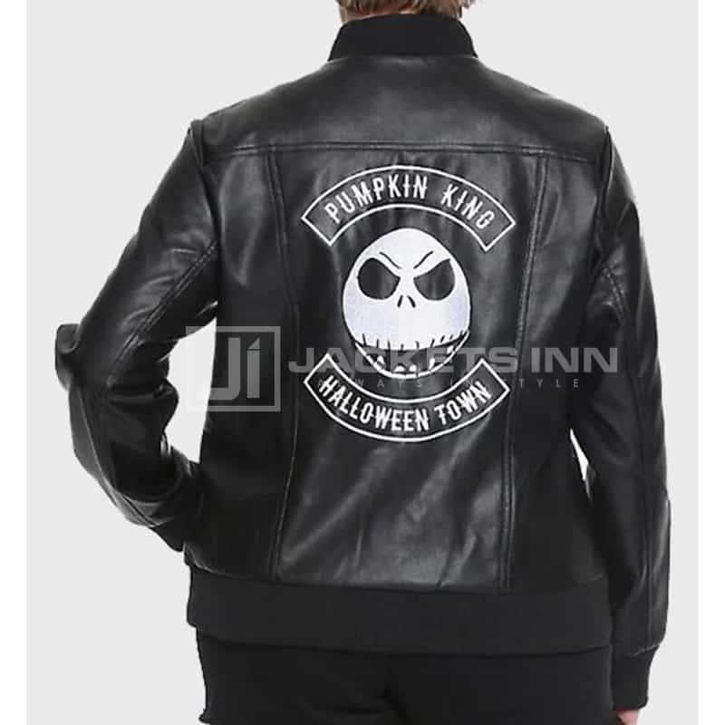 Focus on your Halloween state of mind with this Jack Skellington Pumpkin Ruler Dark Aircraft Calfskin Coat propelled by the old-style character of Jack Skellington from Tim Burto.