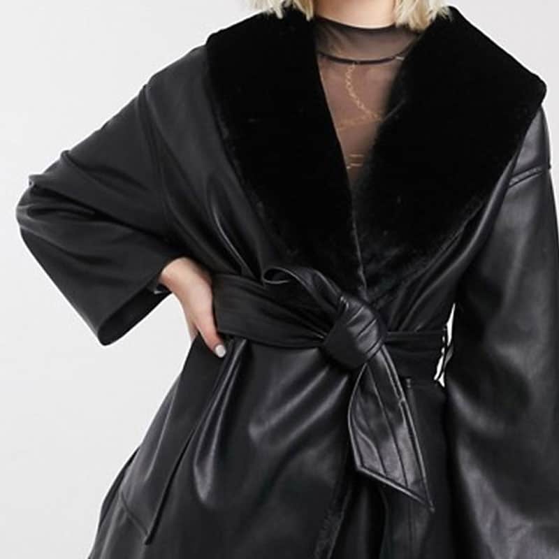 The farthest thought about oneself and eloquence appears with acquiring a tie waist fur-lined leather jacket for women designed to give a chic and striking style. The iconic black leather long jacket having attributes of fur-coated shawl lapels, flap pockets, a front belted closure and crafted with premium leather is the perfect shift to be wear across versatile occasions. The women’s black leather jacket with Faux-fur lining provides adequate warmth through the chilly wintertime, providing users stability toward cold breezes of wind without giving up on its silken and stylish looks. This trendy women’s jacket is the most preferred black color, but it will be available in other colors on request.