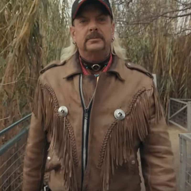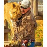 This tiger king Joe exotic leather fringe jacket is produced using authentic cowhide leather material. It is accessible in an exemplary brown colored shade that gives it a restless and shrewd look. The Tiger king leather jacket has a shirt style neckline and a marked YKK zipper conclusion. The internal of the coat comprises of a delicate thick covering for warmth and solace. The Joe Fascinating Calfskin jacket has long and fitting sleeves with zipper sleeves and shoulder straps.