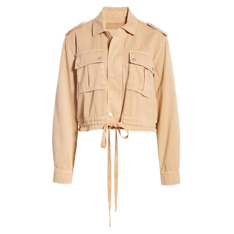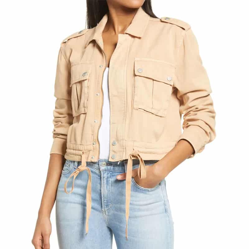 Women are always crazy about carrying the trendiest wearing. So, look at this Twill Utility jacket BLANKNYC 2 clothing for women. The cool outerwear in peach color is fabulous to carry. The skin of the attire is made of pure cotton material. It features a front zipper closure with astonishing storm placket at the back, a spread collar design. The jacket is perfect to carry with two chest snap flap bellows pockets. The outerwear looks stylish with long sleeves and drawstring hems at the front. Shop now, and steal the crowd.