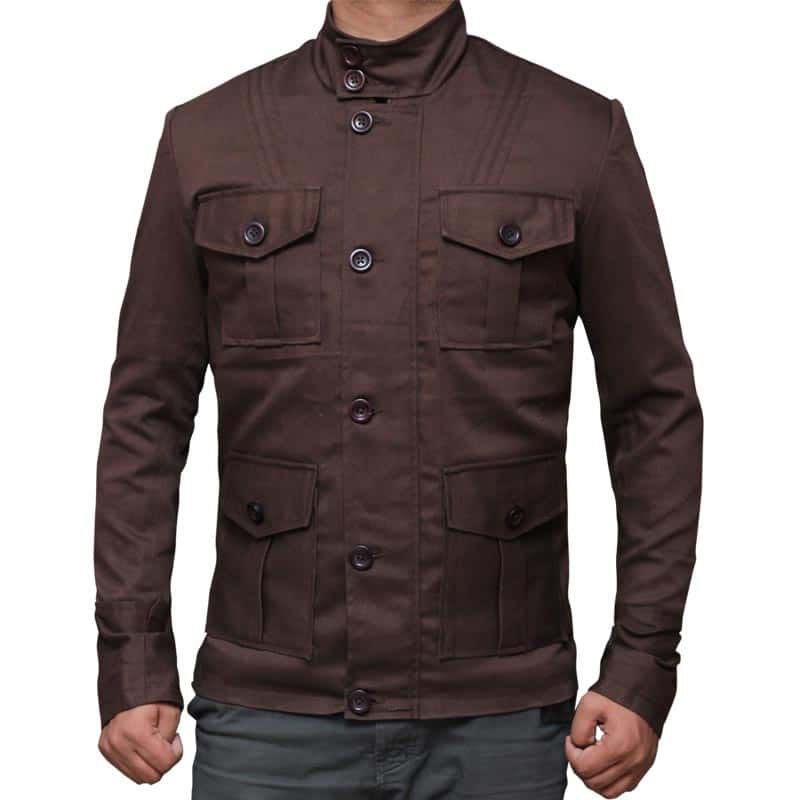 Utah Racing Style Brown Four Button Pockets Mens Casual Lightweight Cotton jacket is among the trendiest jacket these days. Celebrity cotton coats is for men who aims to look stylish. is made up of high quality original cotton with long sleeves. Short tailored coat comes with viscose lining, shirt style collar and front zip closure and button belted cuffs. If you don’t have a ready-to-wear cotton jacket that gives you a decent look, then you must consider tailored summer coat in regular fit. Be it summer season or spring, tailored belted coat is the best choice for you. By adding a mens smart casual coat in your closet you can represent a charming personality with no regret. Our cotton and leather coats store provides outerwear in all sizes including plus sizes and XXS.