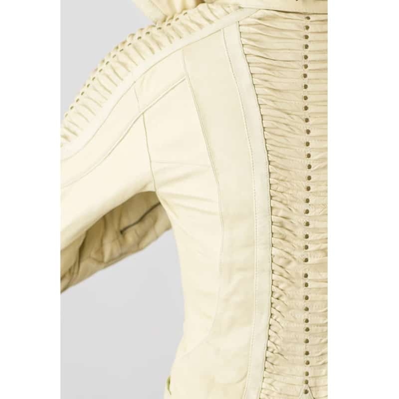 White Soft Cut Leather Fabric jacket For Women