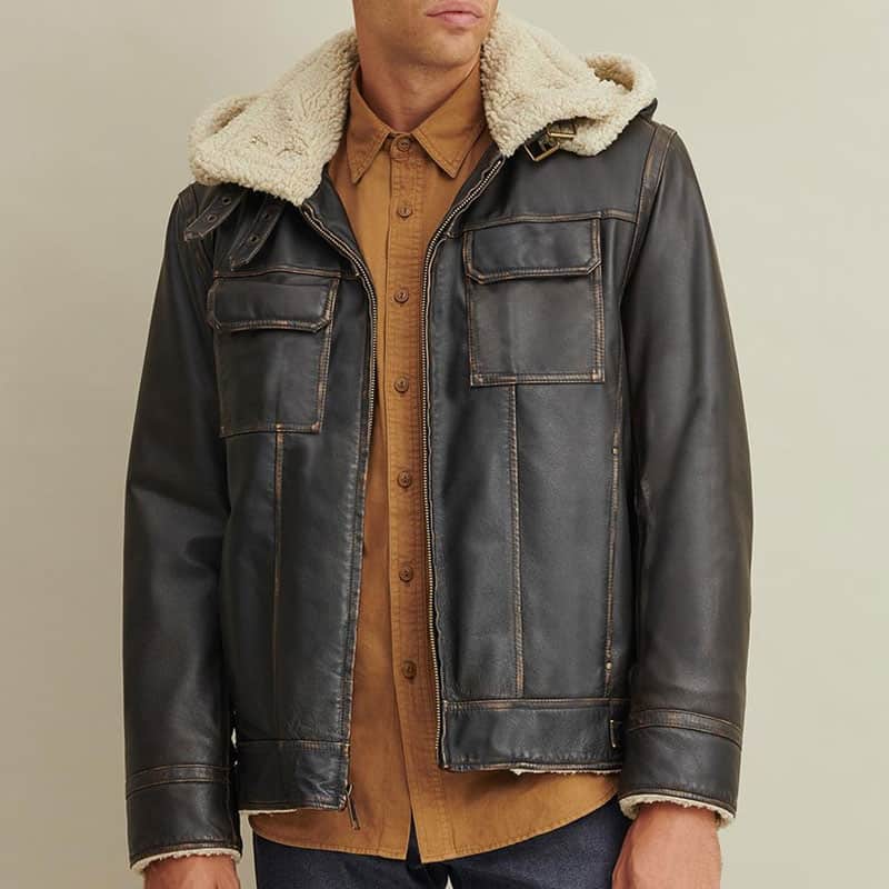 This Wilsons’ leather Emmett classic leather bomber jacket comprises a certified calfskin. The inward has a polyester fill. The new change is the Emmett exemplary coat sleeve lining layer, which gives you solace. This Emmett leather jacket has a zippered front with a container and stand-up collar, and it has a speed-off hood with false shearling-lined. The sleeves are full-length with open sleeves. On-crease hand pockets and snap-fold chest pockets. It clasped side tabs.