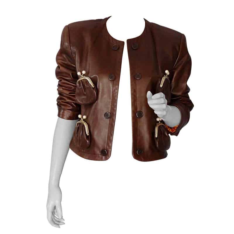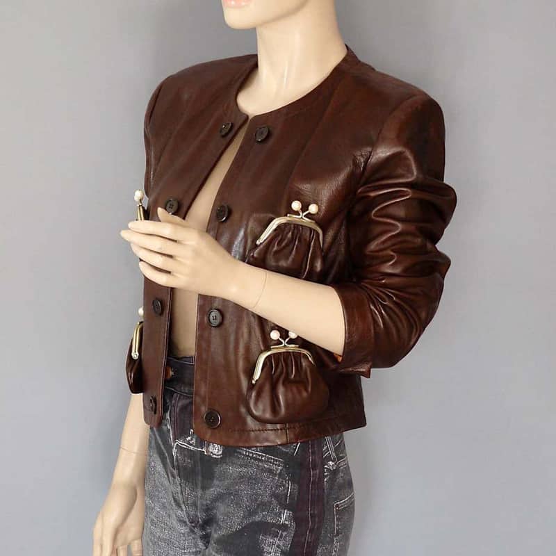 Women Amazing Vintage Style Brown Kiss Lock Pocket Leather jacket