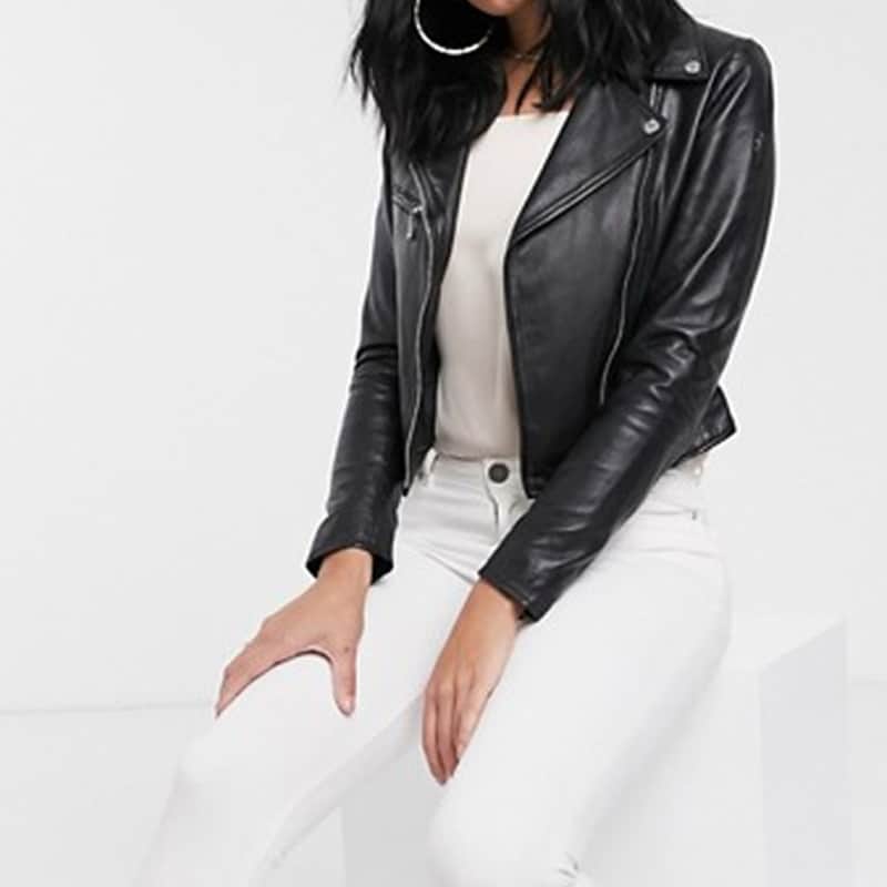 Women Bella leather jacket in Black outfit takes fashionable and extensive look are in the new leather women’s jacket. The fitted jacket women’s leadership superiority with studded lapels, zip fastening, and handy functional pockets make it an accessible attire win and a coat that can wear on any clothes outwardly mislaying style sense. This women’s dress leather jacket is constant on the progress were a personality outlook for reassurance, interest, and cooler weary of putting them under the dedication. The small leather jacket for women are affordable in range. Their comfortable stuff with matt finish makes it pretty and practical to accept even the minor facts without thinking twice.
