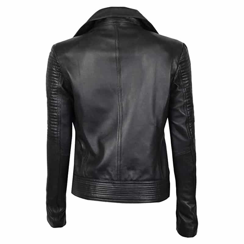 Women Black Asymmetrical Biker Quilted Leather jacket