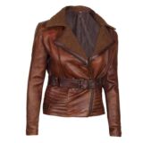 Add vintage energy to your colder time of year outfit with this exemplary shearling calfskin coat womens. It’s made of great lambskin cowhide and fixed with white shearling. The dull earthy colored cowhide coat likewise incorporates a focal zip conclusion, two external pockets, one inside pocket, and a removable hood. This womens brown shearling winter leather jacket is an ideal costume for the colder season. Buy jacket for this season and stay warm!