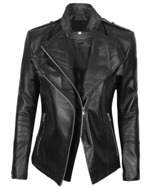 Womens Four Pocket Asymmetrical Distressed Brown Leather Biker jacket